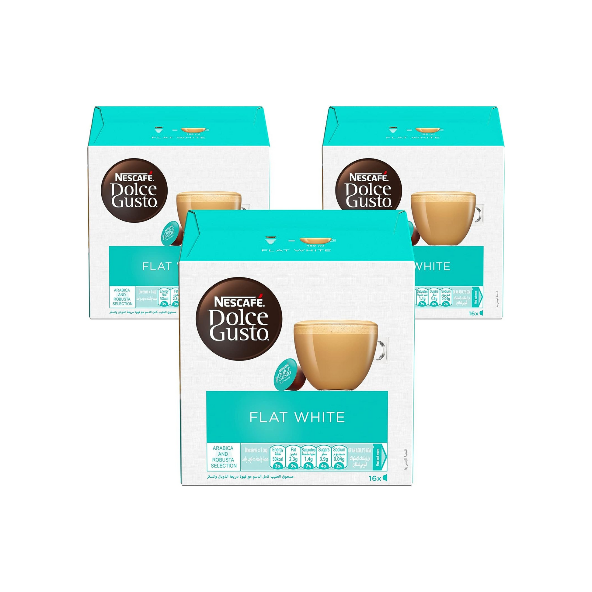 كبسولات نسكافيه دولتشي غوستو فلات وايت – 3 عبوات (48 كبسولة) | قهوة كريمية ناعمة